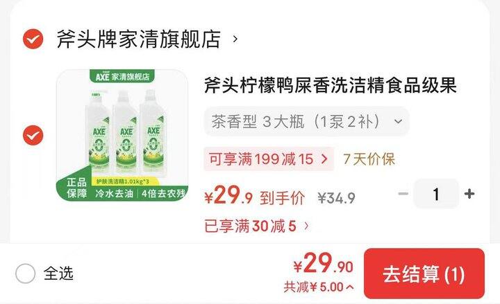 斧头牌 柠檬鸭屎香洗洁精1.01kg*3瓶装