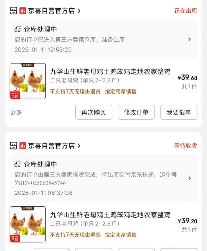 39.9💰2只老母鸡(单只2~2.3斤)