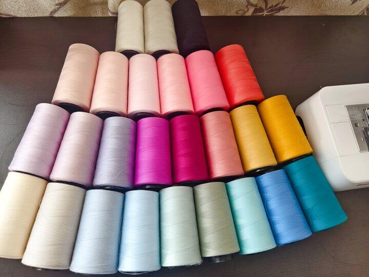 就是我放到机器上才发现,家用缝纫机的横轴放不了这种大桶的宝塔线🧵还得再买一个线架才行[胖鹿捂脸]