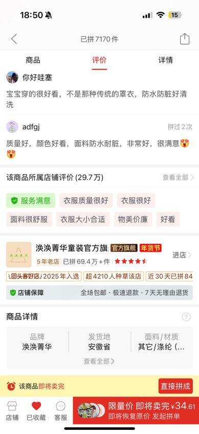 抖音有人讨论带娃参加别人的宴席要不要穿罩衣,说穿上太土了,然后我评论晒了刚买的罩衣,有个姐妹太可爱了,说跟她700多买的miniature一毛一样,甚至也是加绒的😂,还有人问是不是戴维贝拉的,其实pdd才30多块