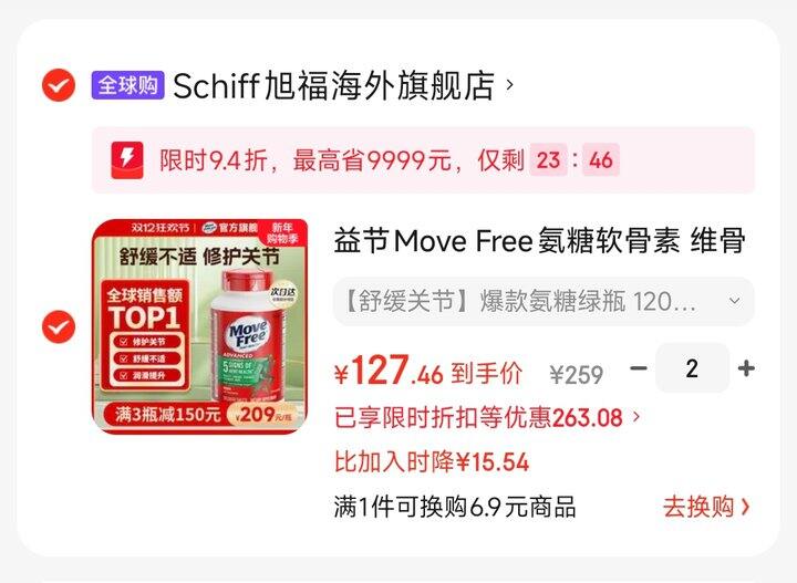 2. 拍2 MoveFree益节氨糖绿瓶120粒