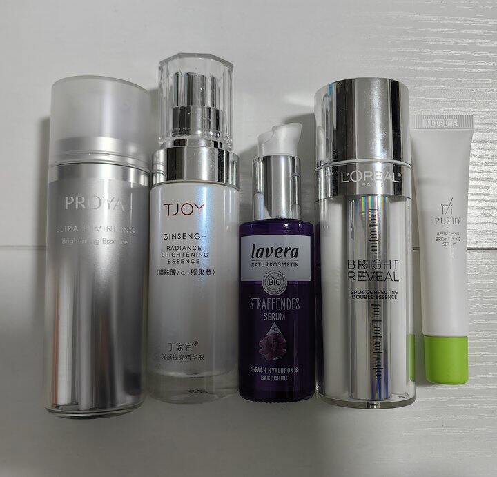 珀莱雅美白精华,好像白的很慢,有一边会用的很快,最后只剩下一边用,还有一瓶慢慢用完应该不会回购了丁家宜熊果苷精华我都拿来做早上精华用,还可以吧,无功无过,白不白真的不知道,活动便宜做晨间挺好的