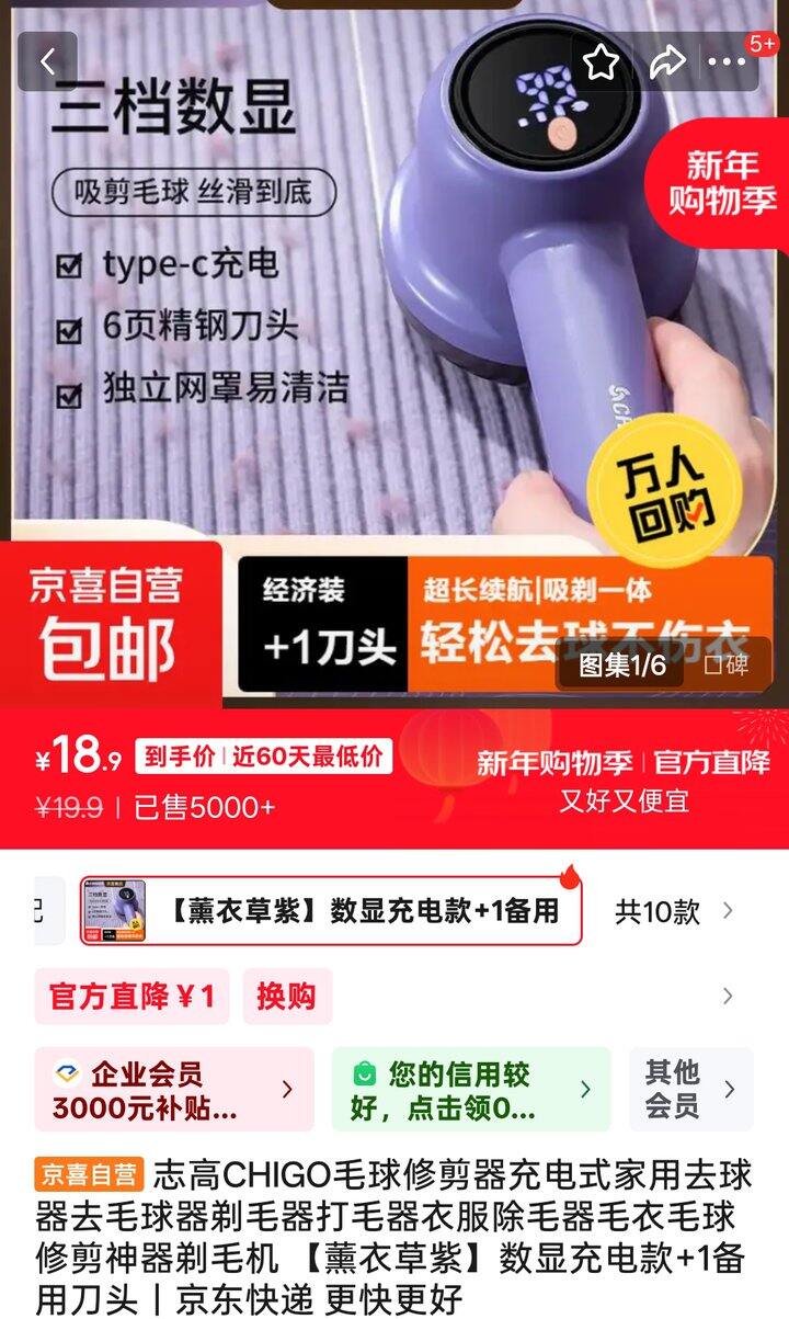 18.9💰 志高毛球修剪器数显充电款+1备用刀头