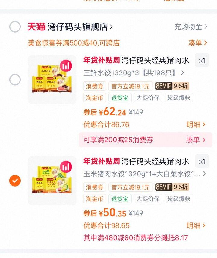 ❹凑单拍三件(凑美食券)