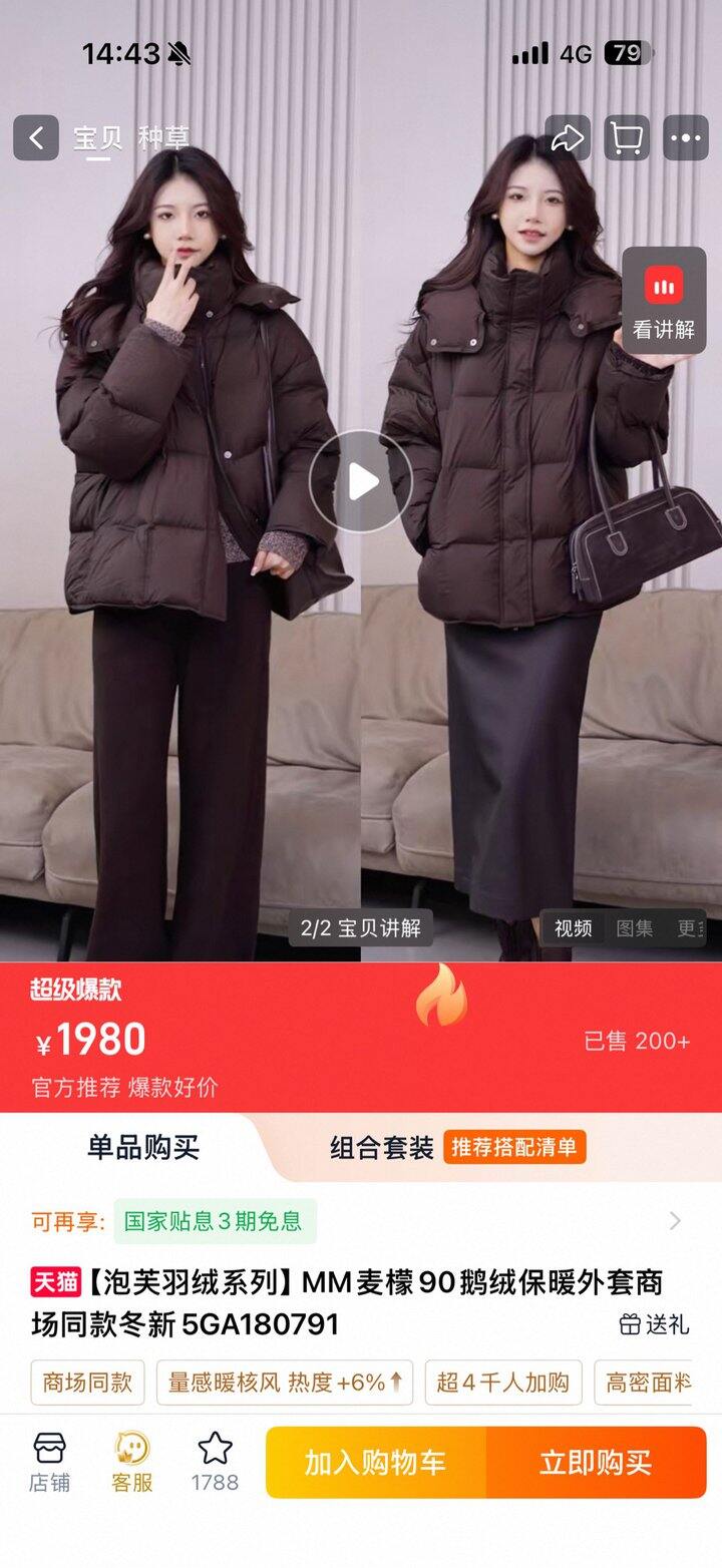 我今年试过的最好看的羽绒服是麦檬家这件棕色的短款,