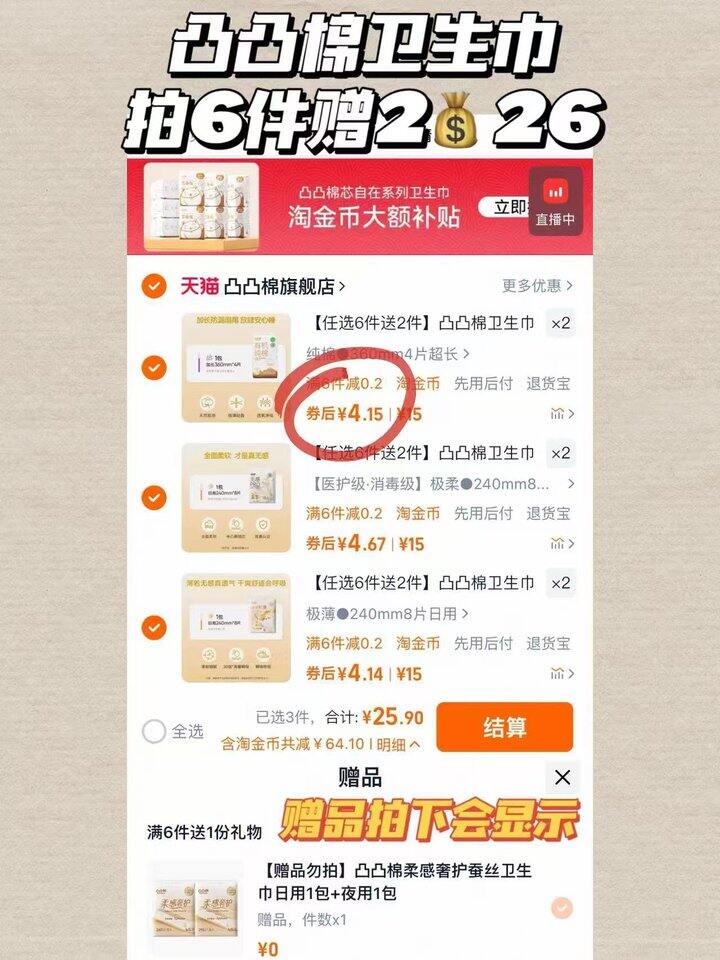 凸凸棉卫生巾!💰3