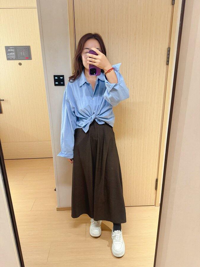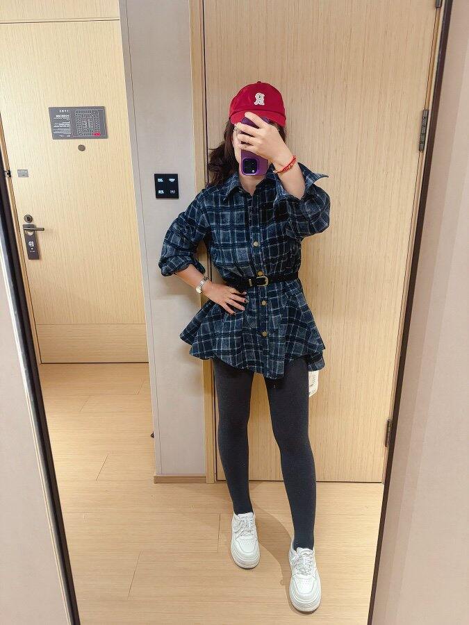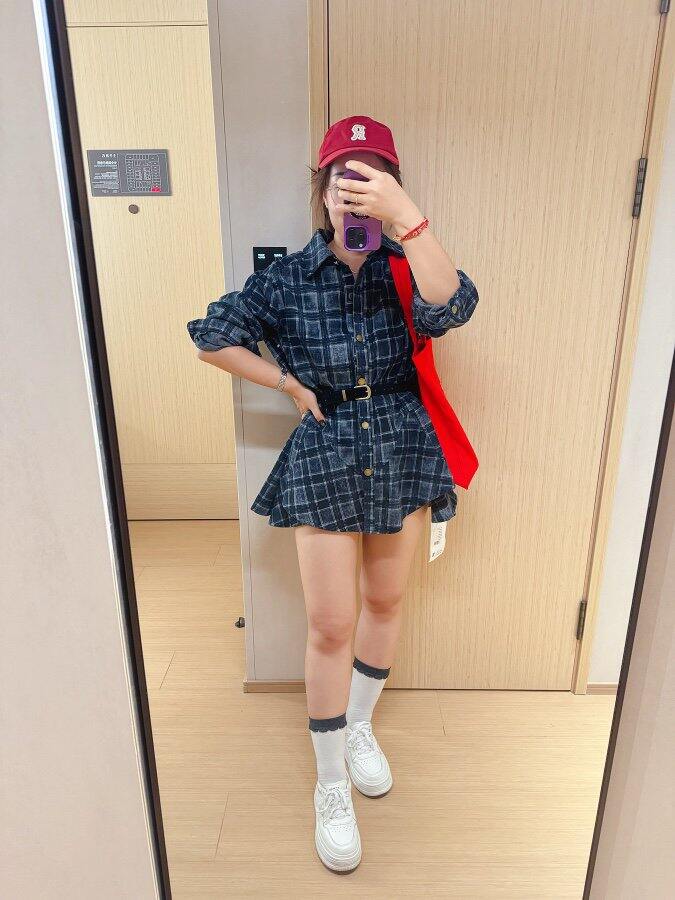 格子衬衫裙,199。这件衣服我觉得减龄了10岁大概,得梳个双马尾才配得上。