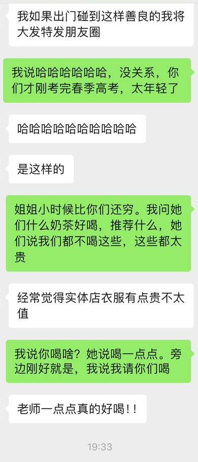 问路的时候遇见了两个好热情的刚刚高考完的妹妹,于是请她们喝了两杯奶茶。年轻的妹妹真美好,但是自己长大了独立赚钱的感觉也真美好。