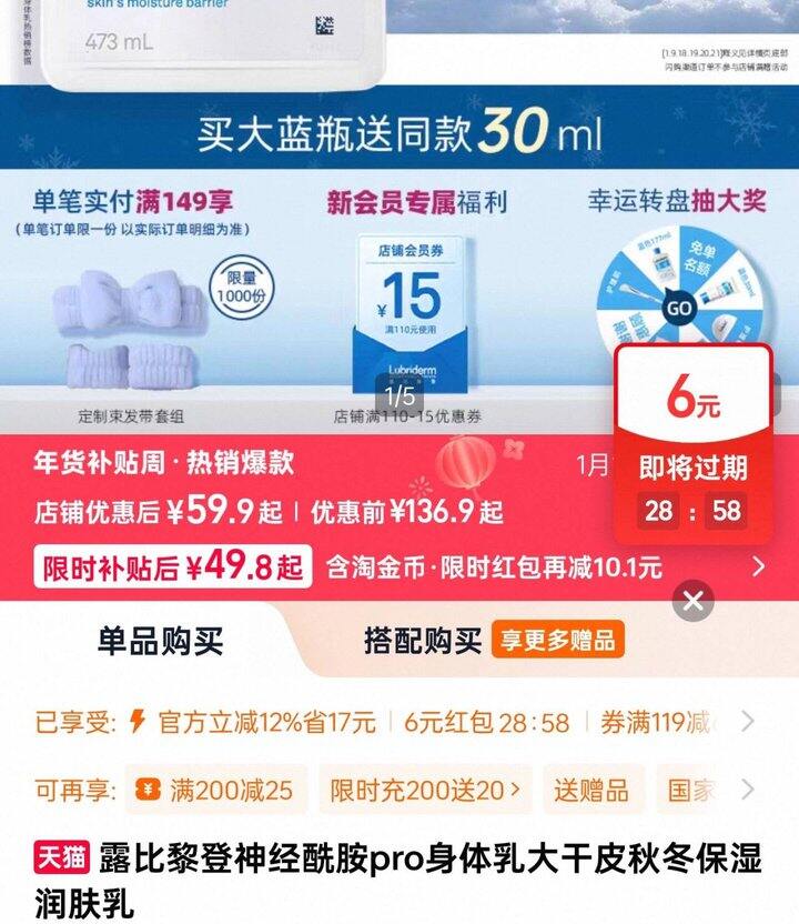👉如有200-25消费卷用这个凑;
