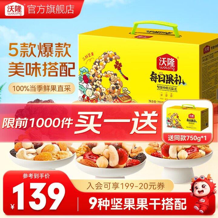 沃隆 每日坚果升级版礼盒750g【28袋装】💰99🉐2盒(含赠);才49.5/件❗