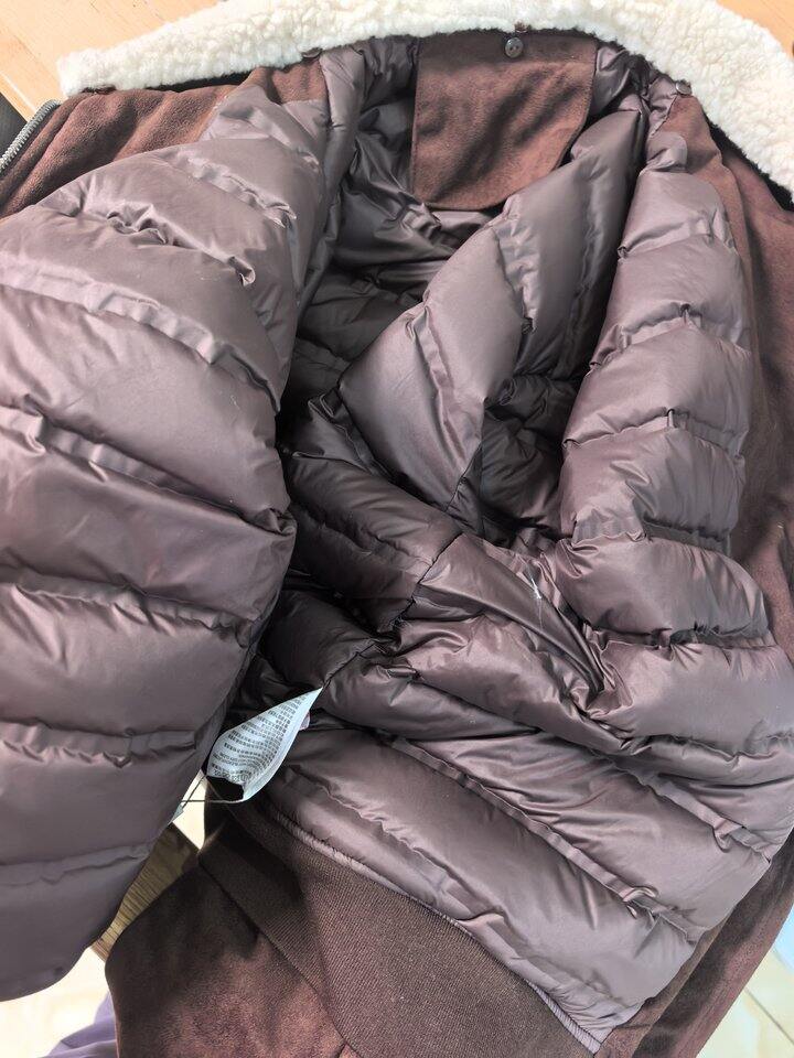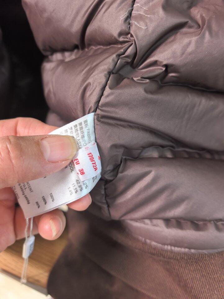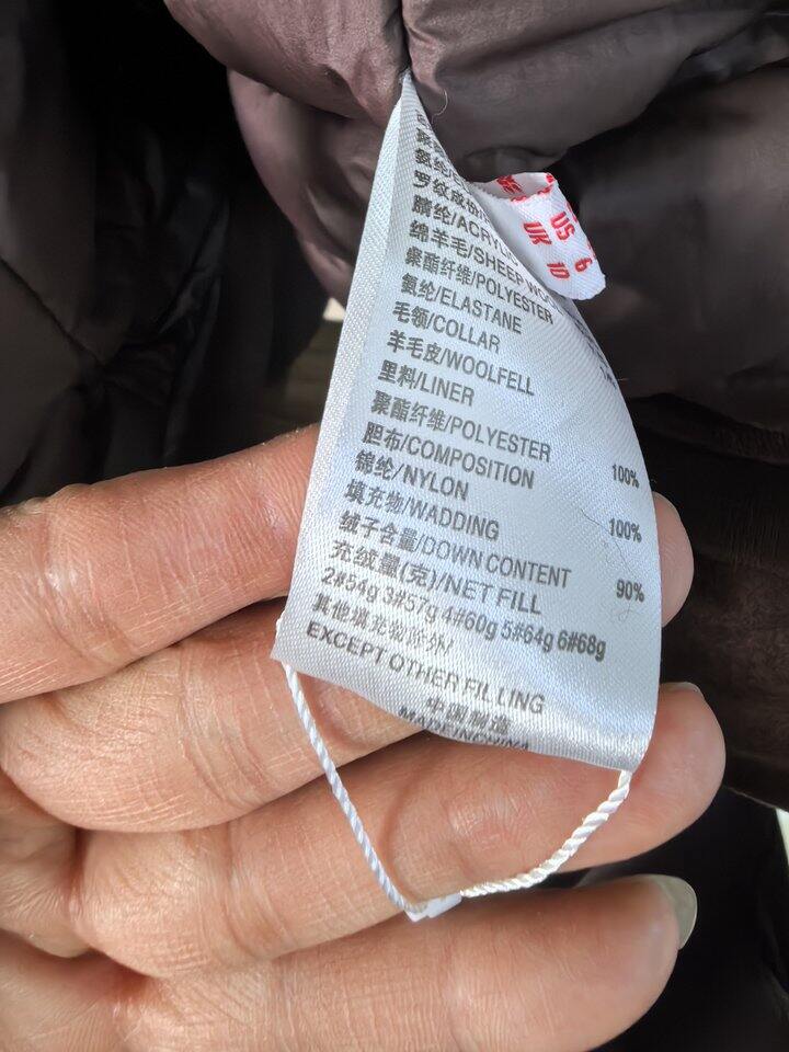 这个标和雅莹的非常像,我没有拿出来对比,懒得拿。然后成份标和其他卖四五百的都是一样的,这家是最便宜的,虽然我不相信三四百能买到羽绒,但是我用手细细的感受了一下,感觉像羽绒,没摸到梗,边角漏出来的也是绒。