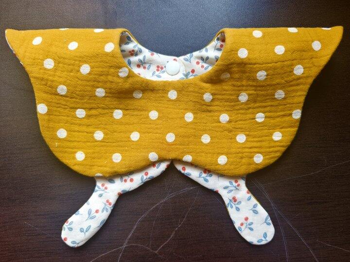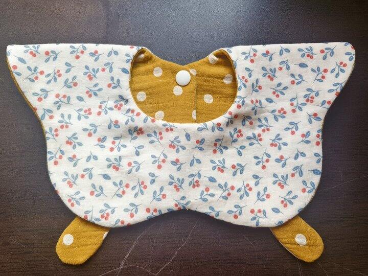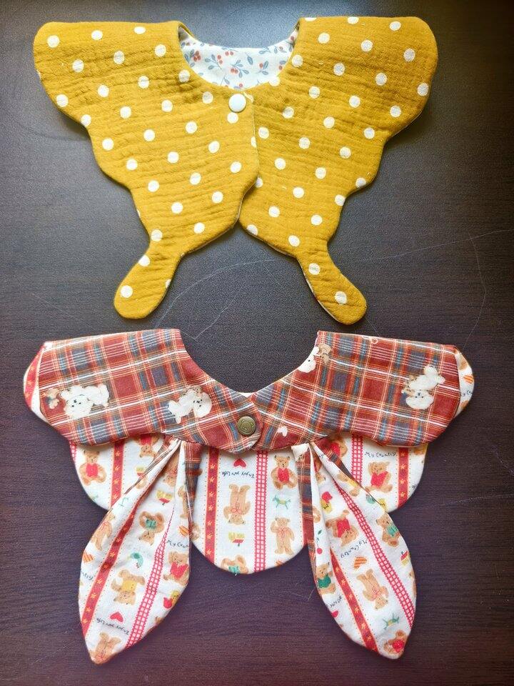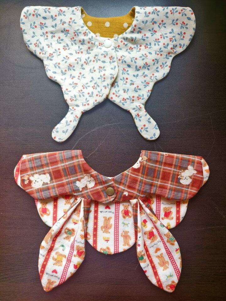 嘿嘿,看到大家的夸夸,没忍住又做了一款小蝴蝶口水巾,双面可戴,小蝴蝶可以放在前面也可以放在后面做领子;正反两个花色都好看,正反也可戴,所以加起来一共可以四种佩戴方式[胖鹿哈哈]