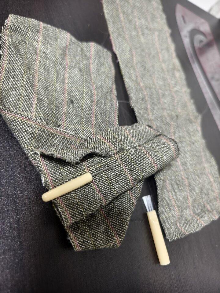 我看教程里大肠发圈需要的布料是80cm×12cm,量了量裙长不够,裁了两片40cm*12cm的,拼起来也能用[哭笑]