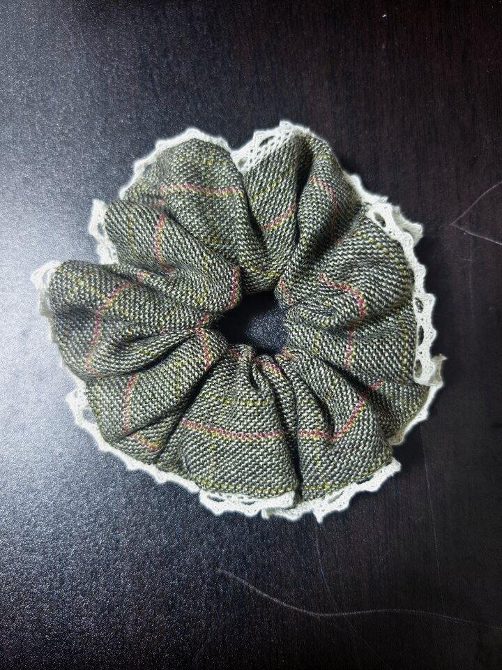 吃完晚饭,手有点痒,翻了翻衣柜,找出一条旧的磨毛格子裙,拿起剪刀就是剪。做过口水巾后再做大肠发圈,简直手到擒来,因为只需要车直线就可以了。