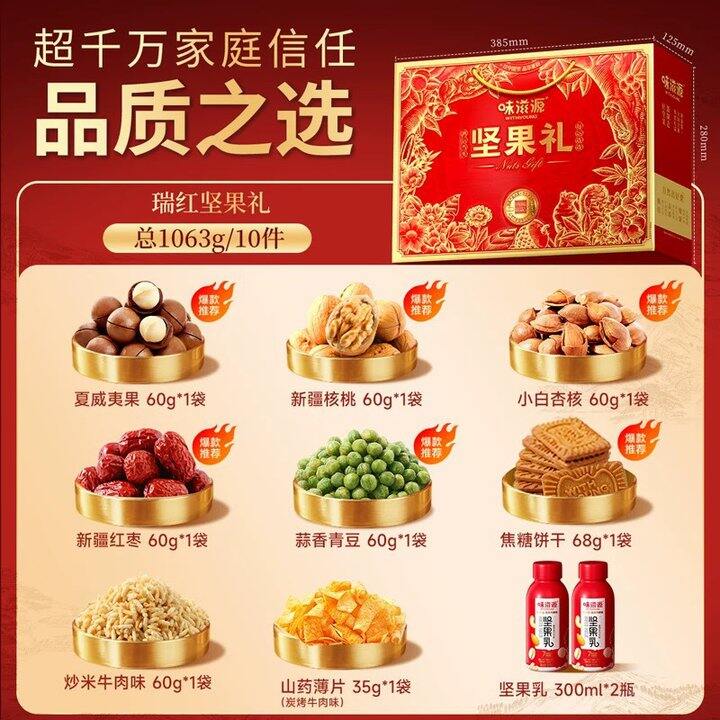 味滋源瑞红坚果礼盒1063g混合装干果零食大礼包年货节送长辈礼品
