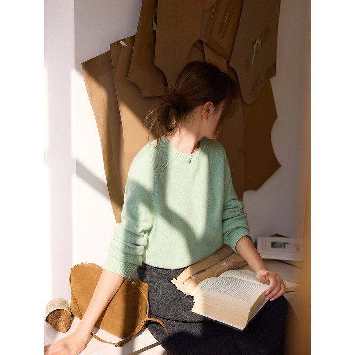 「MISAZ」仿浣熊纱 基础款圆领毛衣 亮色小刺绣圆领套头绵羊毛衣