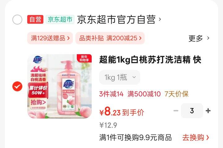 8.2/瓶,超能洗洁精1kg