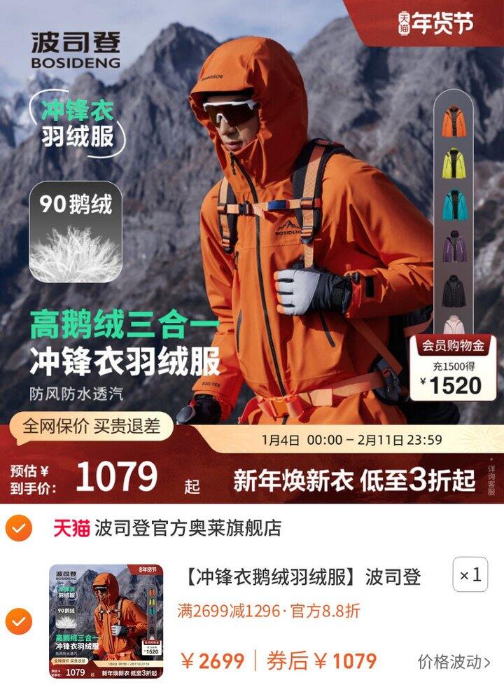 1、冲锋衣鹅绒羽绒服https://m.tb.cn/h.7ktFlXh弹199礼金,淘金币页面加购