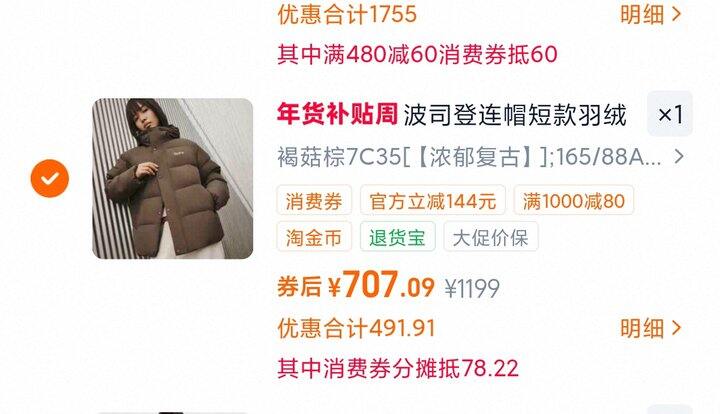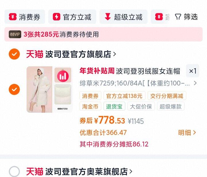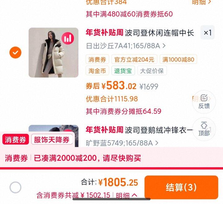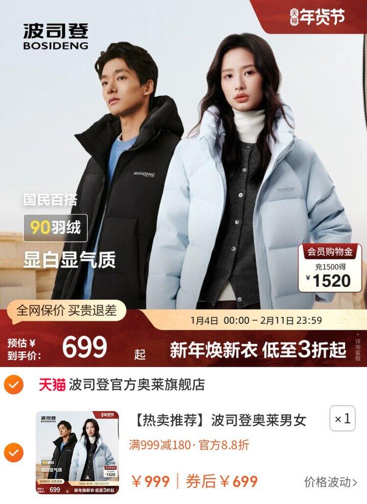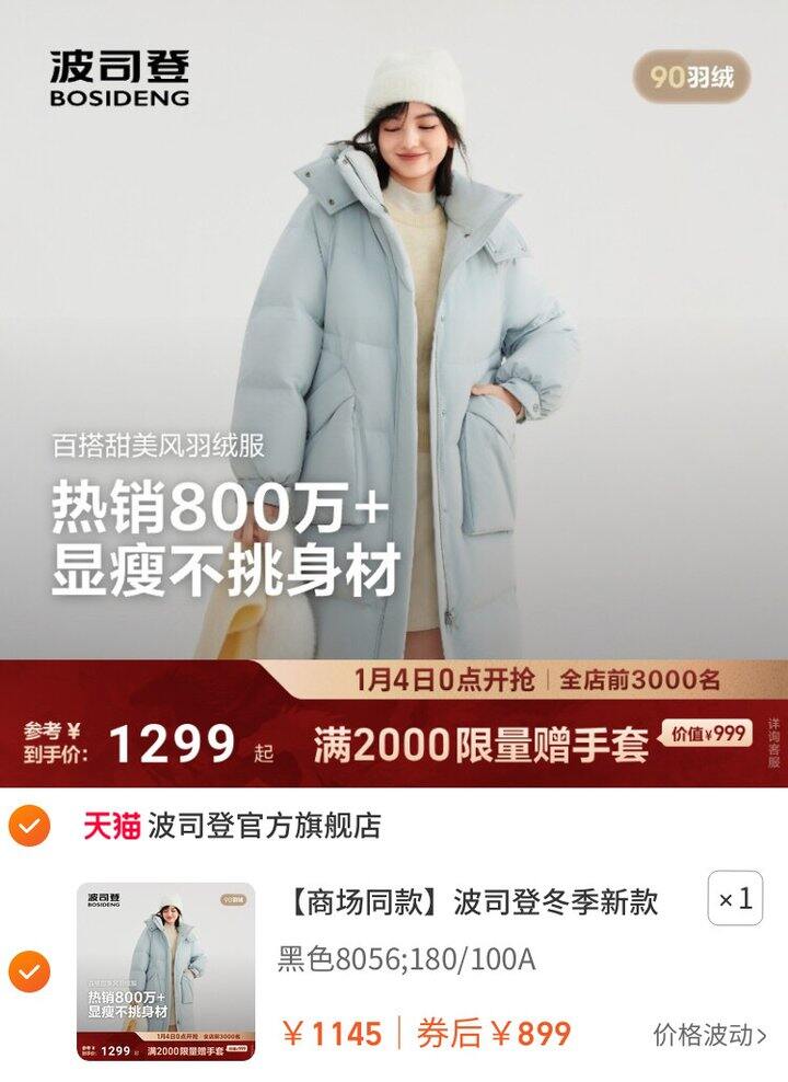 1、波司登冬季新款羽绒服https://m.tb.cn/h.7k8wpiP弹179礼金,淘金币页面加购