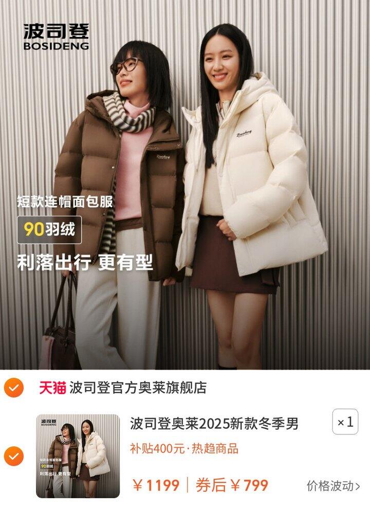 1、波司登奥莱2025新款冬季男女同款休闲百搭保暖短款连帽羽绒服https://m.tb.cn/h.7PrXRxJ弹159.8礼金