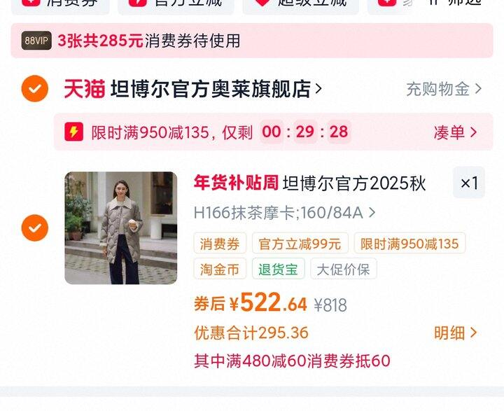 1、坦博尔官方2025秋冬新款中长款轻薄羽绒服女款保暖修身时尚外套https://m.tb.cn/h.7ku3Uml弹119礼金,淘金币页面加购