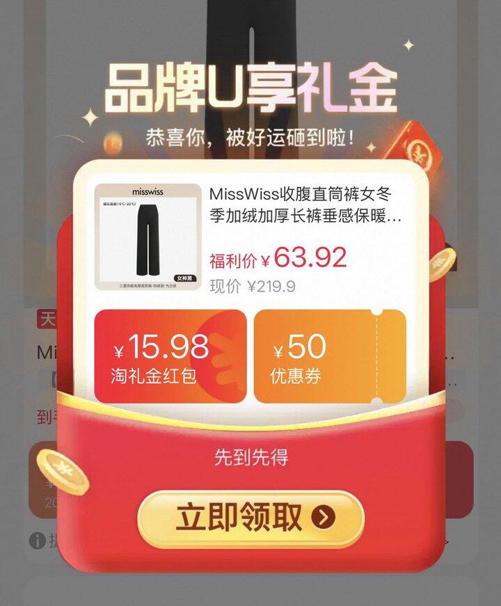 3️⃣MissWiss直筒裤加绒款 领15.98礼金