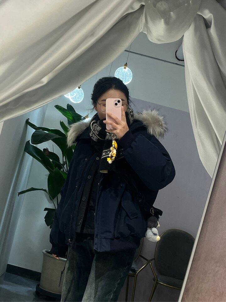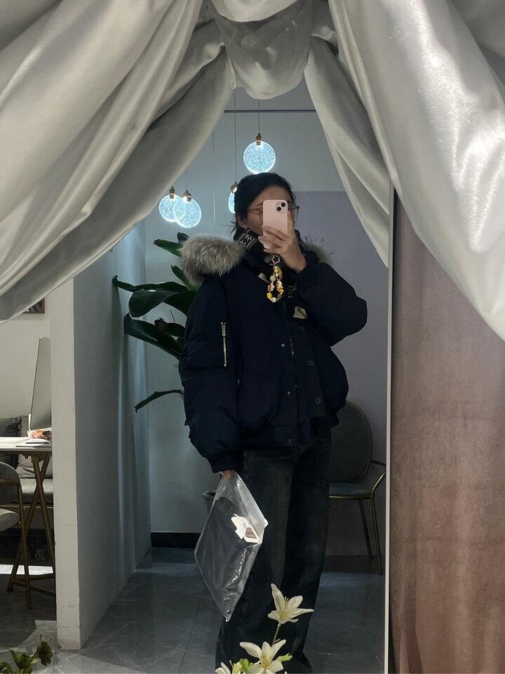 买了软软推荐的羽绒服 蓝色的耐脏又好看 毛领很大 适合高个子哈哈 袖子超长