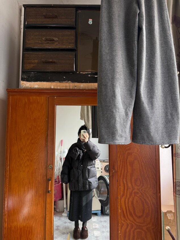 补三张上身图,不是那种很显瘦的版型,但比我买的其他羽绒服都更适合我