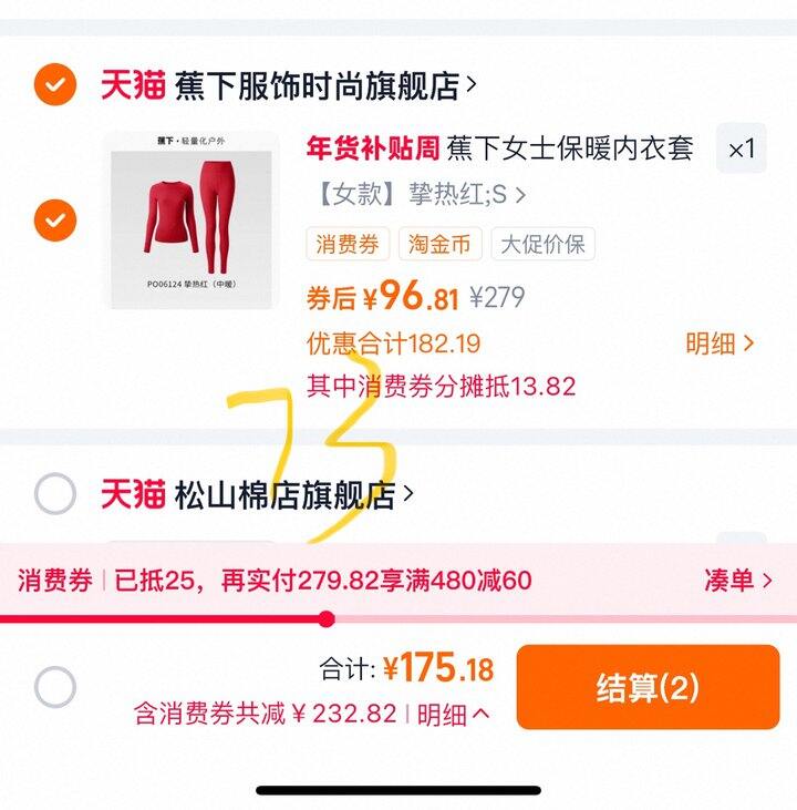 红色款最便宜,凑单到手73,双绒保暖内衣