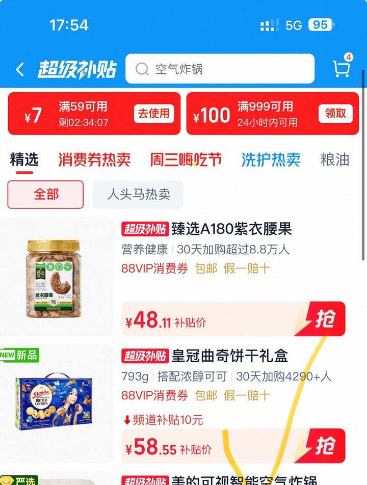 弹淘礼金,收藏,去猫超首页-超级补贴加购,页面领59-7