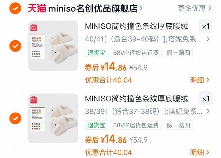 名创优品棉拖14.8💰