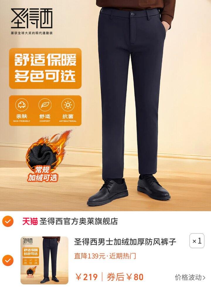 1、圣得西男士加绒加厚防风裤子2025年冬季新款商务直筒休闲通勤