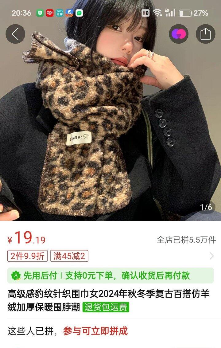 4.豹纹围巾。这条真的物美价廉很好搭配,刚拿到可能会有一点静电,我加了柔顺剂过水。