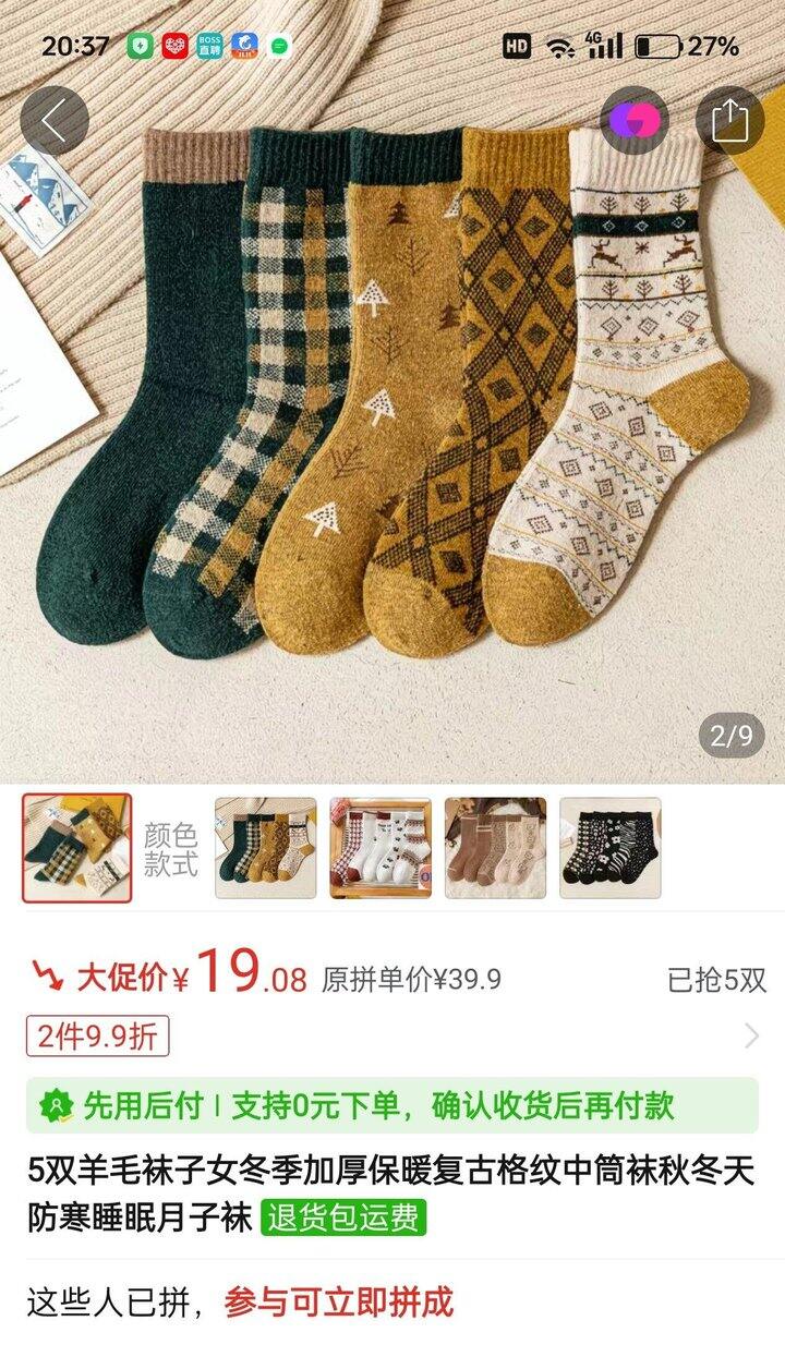5.秋冬袜子。有一点羊毛成分吧,厚实的,很温暖,缺袜子随便搜的,质量还不错,花纹也适合冬天。