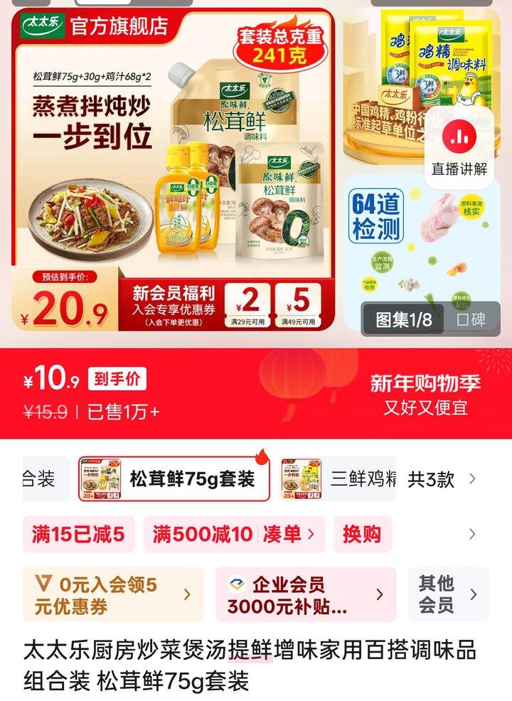 组合超级划算,过年了屯上,今天不是鸡精哦,是松茸鲜,配料干净没有科技与狠活,比超市便宜不止一点点,