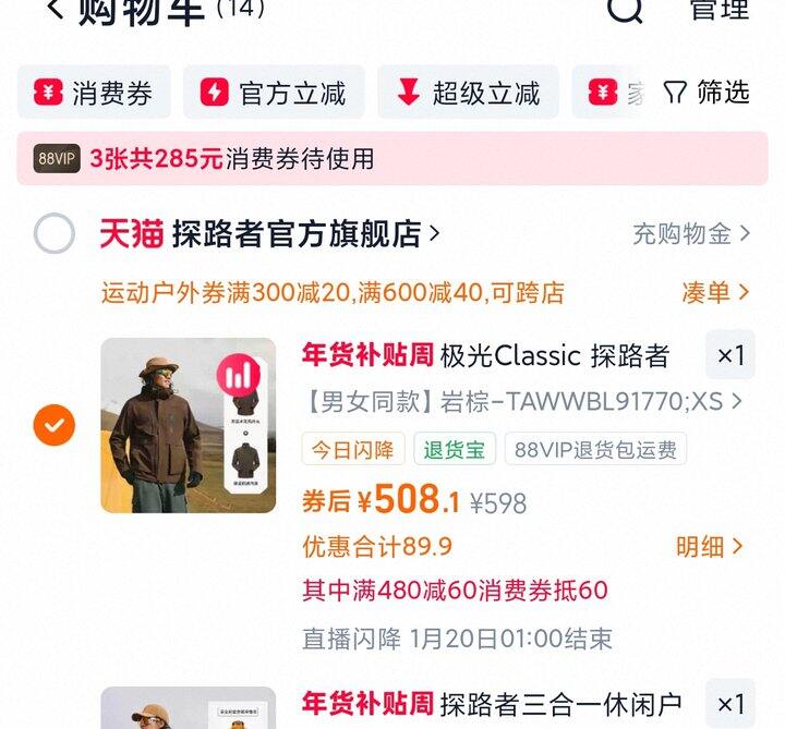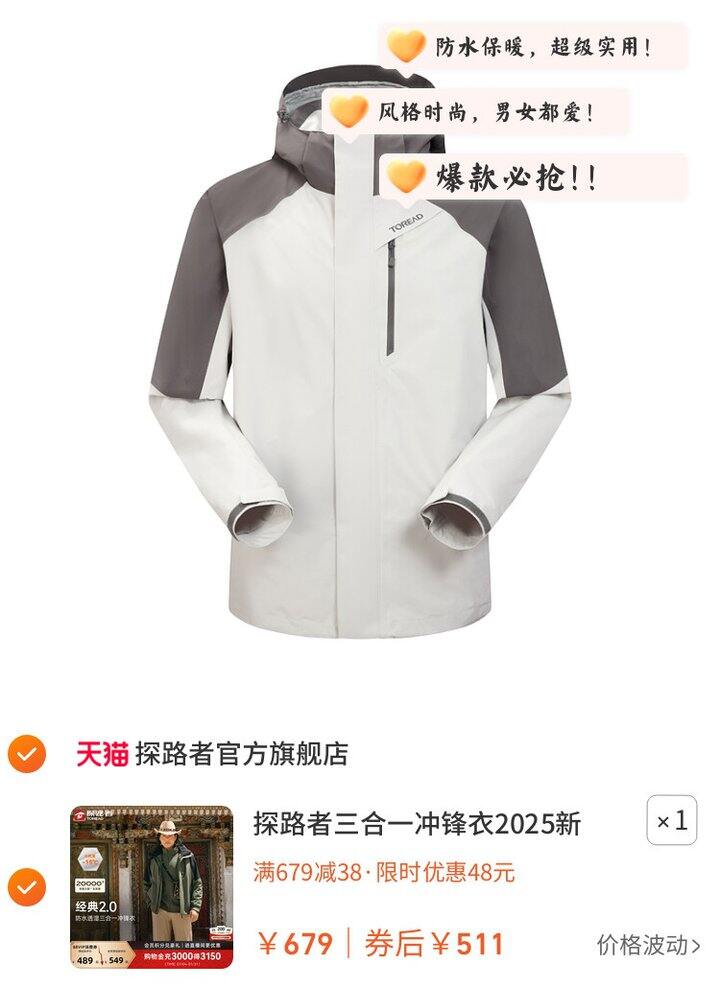 1、硬壳探路者三合一冲锋衣https://m.tb.cn/h.7PgsR5X弹91礼金,淘金币页面加购