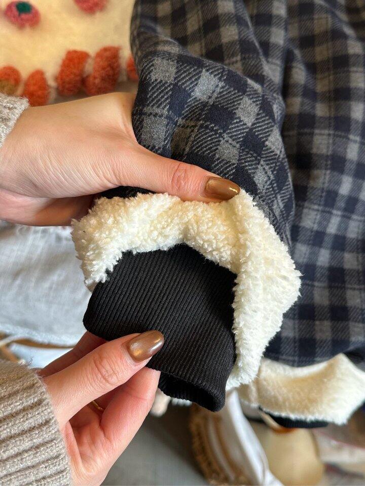内里羊羔绒很暖和,外层是毛茸茸直筒裤型,但是内层还有罗纹收口