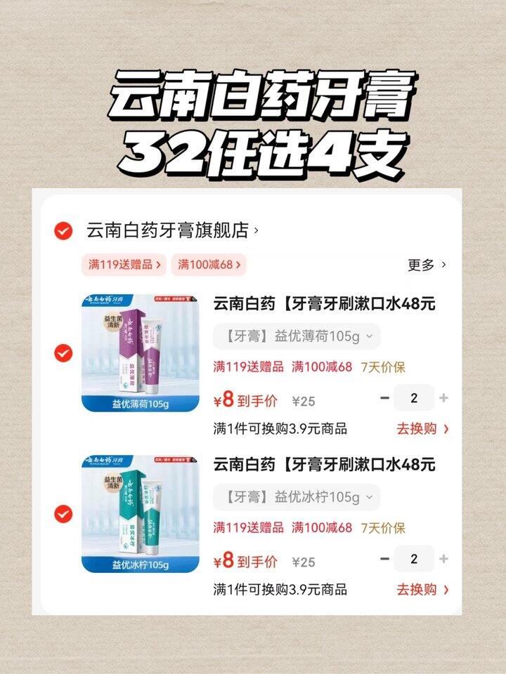 ❷ 云南白药牙膏 任选4
