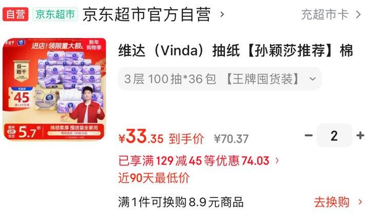 💰0.92/包,维达抽纸Plus到手66.7 共72包❗