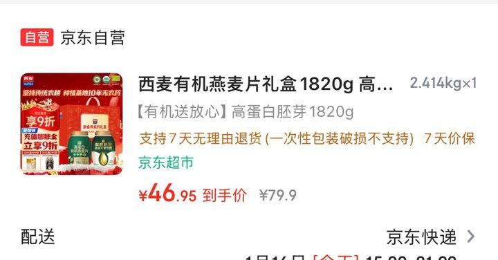 凑后39.9 西麦有机纯燕麦片礼盒1760g https://u.jd.com/EG0YxRy