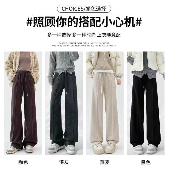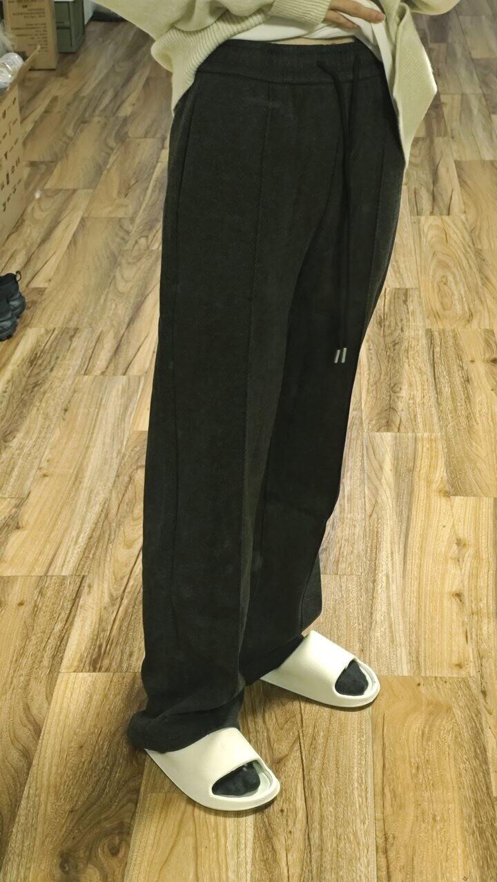 我休闲的衣服居多,上班比较想穿一些休闲的、不用多想,套上就能走的裤子,这条很百搭,中间有一条中缝,比较有设计感,主要是它长度宽度非常合适,穿个4厘米左右的鞋,完全不拖地但有堆叠感。也不是非常阔但是完全不窄,而且是加绒,穿一条薄秋裤完全ok,很百搭今年冬天最爱穿的一条,有点想再买一条米色[哭笑]
