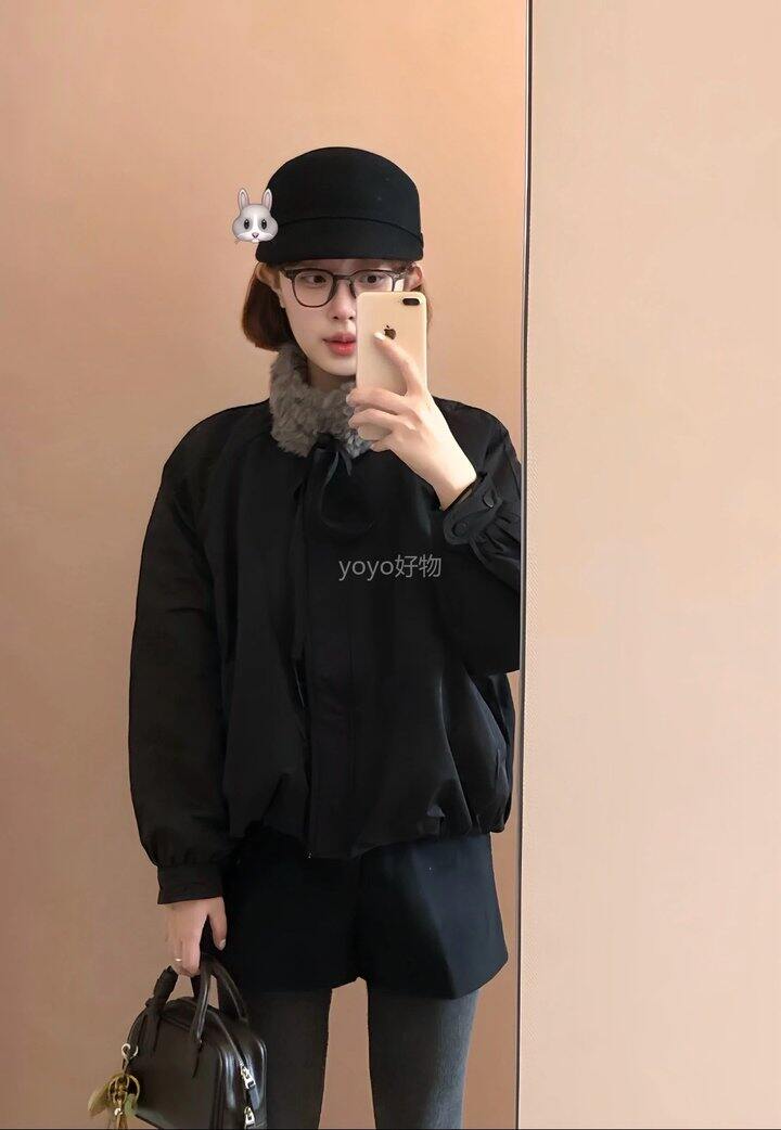 黑色外套面料细腻柔软,富有光泽,轻盈不压身!