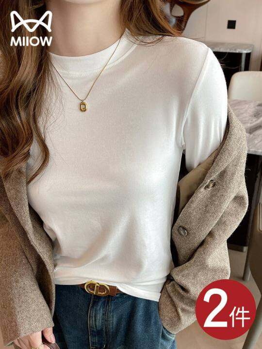 猫人白色早秋打底衫女秋冬圆领内搭2025新款长袖T恤修身显瘦上衣