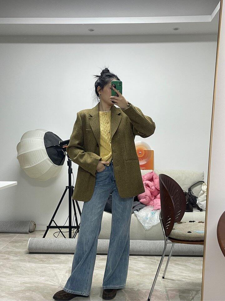 低饱和的黄色开衫,