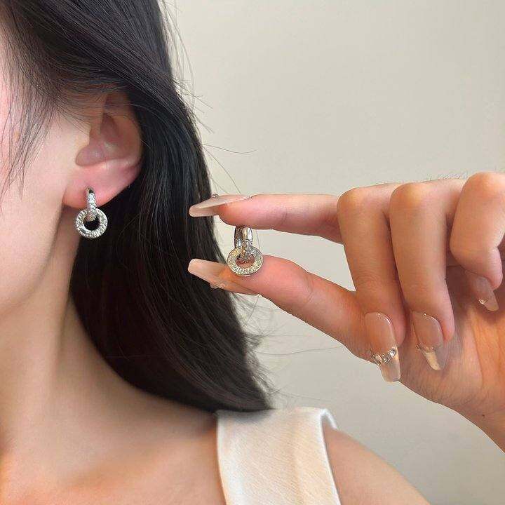 镶钻双环耳扣耳环女2025年新款潮耳针时尚轻奢小众设计感两戴耳饰