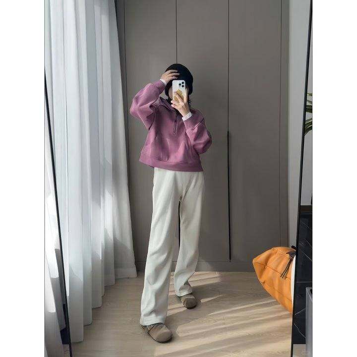 soft女加绒加厚休闲长裤瑜伽直筒裤高腰干垂感显瘦显腿长秋冬