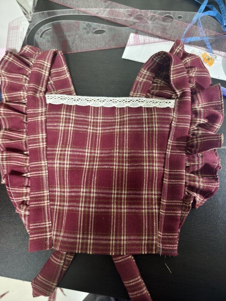 背后两根肩带我考虑用扣子固定在腰带上,这样穿脱更方便。但是家里没有扣子,等明天翻一下旧衣服,拆两颗下来缝上[胖鹿笑哭]