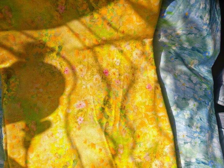 黄色这个感觉实物更好看,非常春天的暖黄色,想着做方巾发圈肯定很好看。