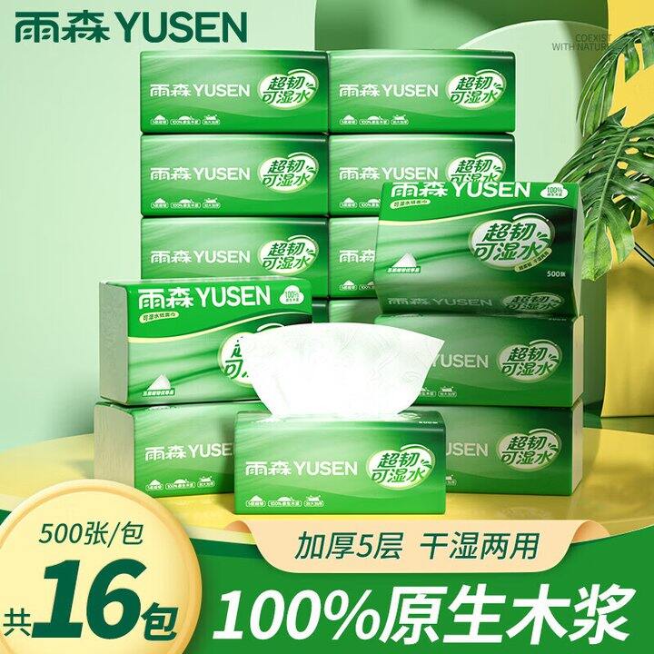 漏价速囤!可拍3单!26.99💰 雨森 超韧可湿水抽纸 5层500张*16包