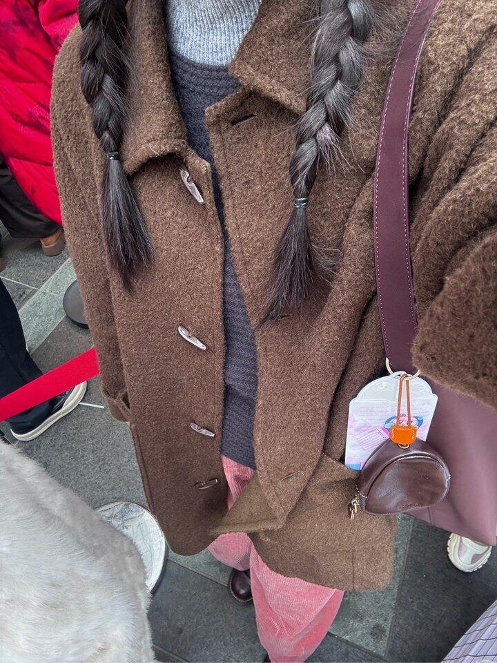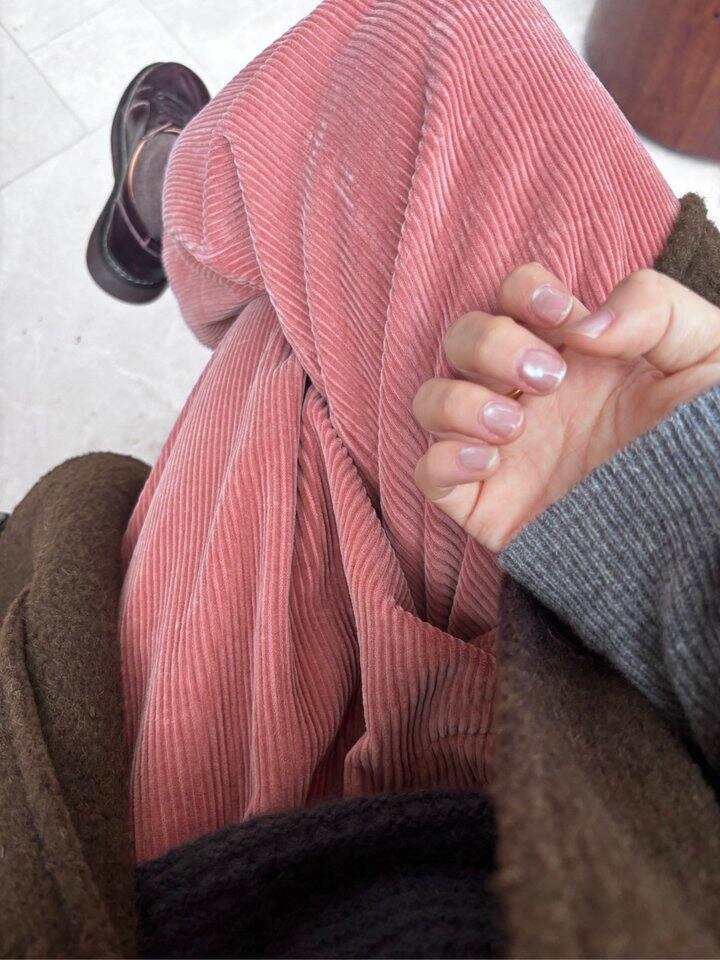 今天穿粉棕色系,秋冬离不开灯芯绒✌️。灰粉也好搭!